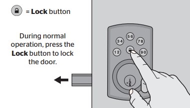 4. Re-press the lock button. If successful, you will listen to two beeps with green flashes. If unsuccessful, you will hear three beeps with a red blink. In that case, confirm the door is open and unlocked and that you are operating a fresh set of alkaline batteries. Repeat step 6.