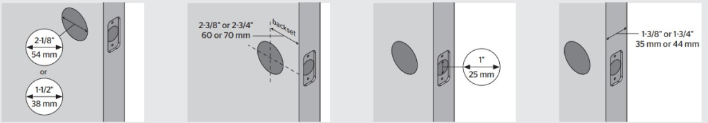 2. Measure to confirm that the door backset is either 2-⅜” or 2-¾”(60 mm or 70 mm) wide.